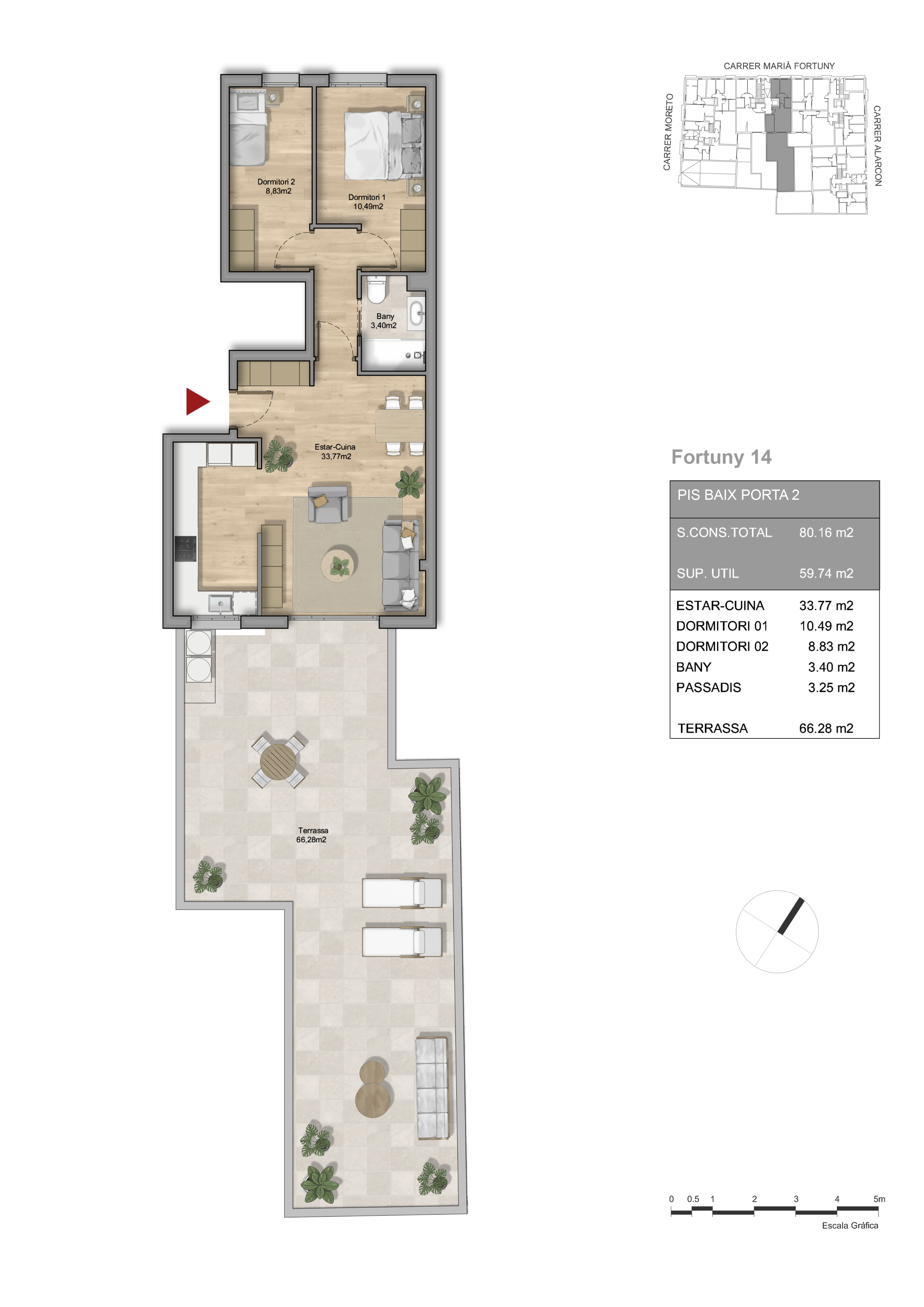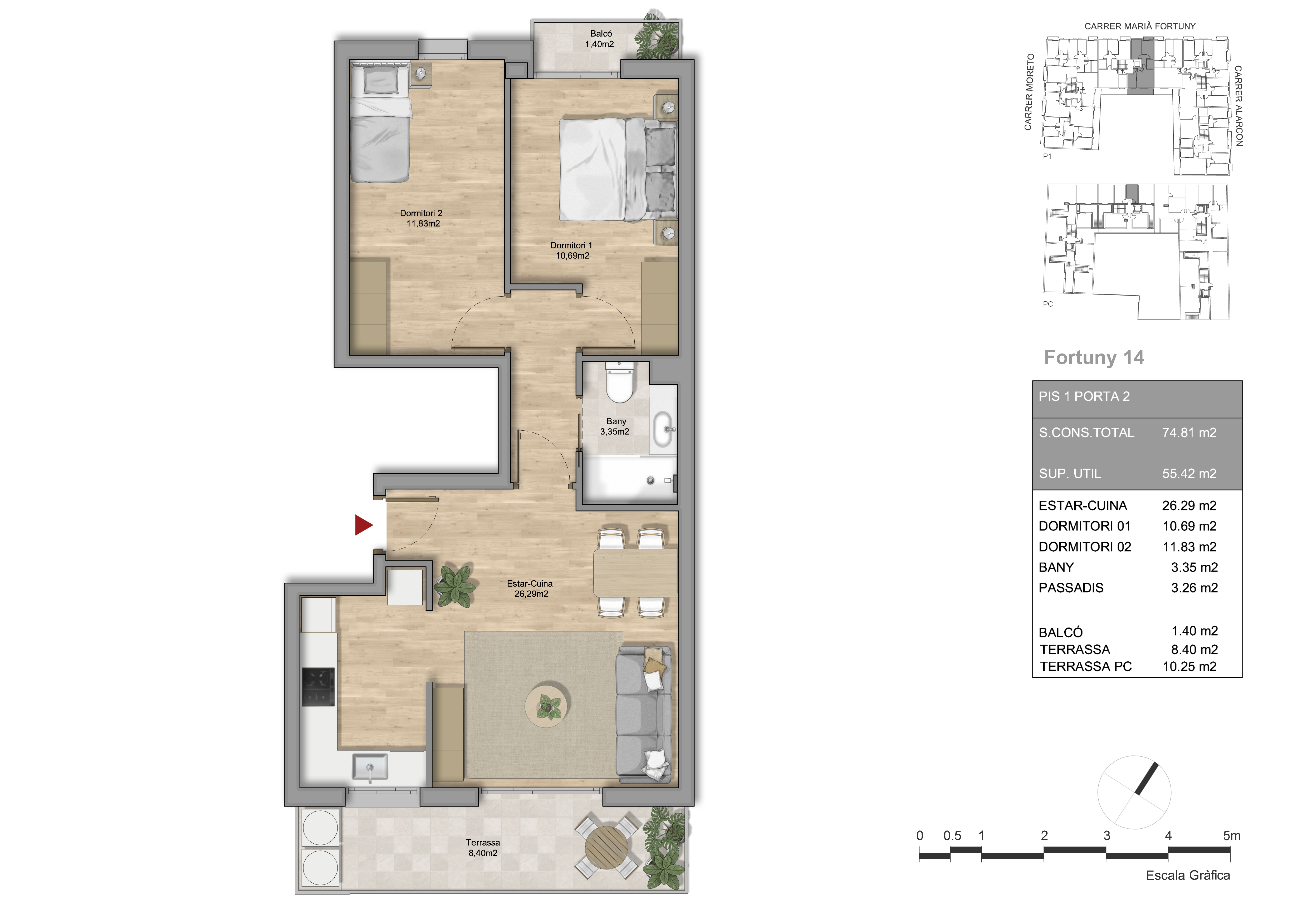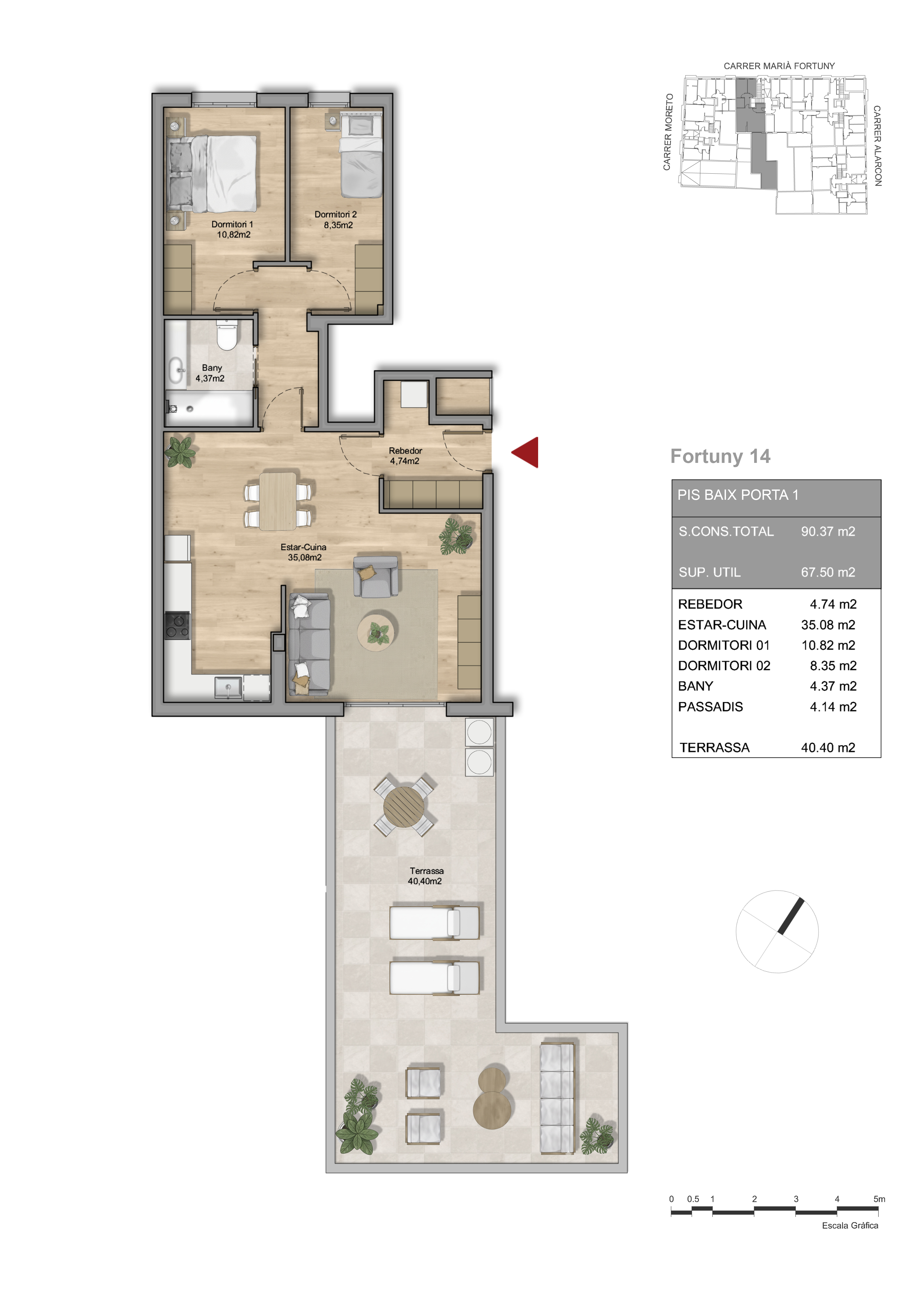 Essence Fortuny nace como la pieza angular de un ambicioso proyecto urbanístico destinado a transformar media manzana entre las calles Moretó, Fortuny y Alarcón de Mataró. Este edificio de 8 viviendas de obra nueva no es solo una promoción aislada, sino el inicio de un gran complejo residencial compuesto por un total de 4 edificios que redefinirán la estética y funcionalidad de la zona.
