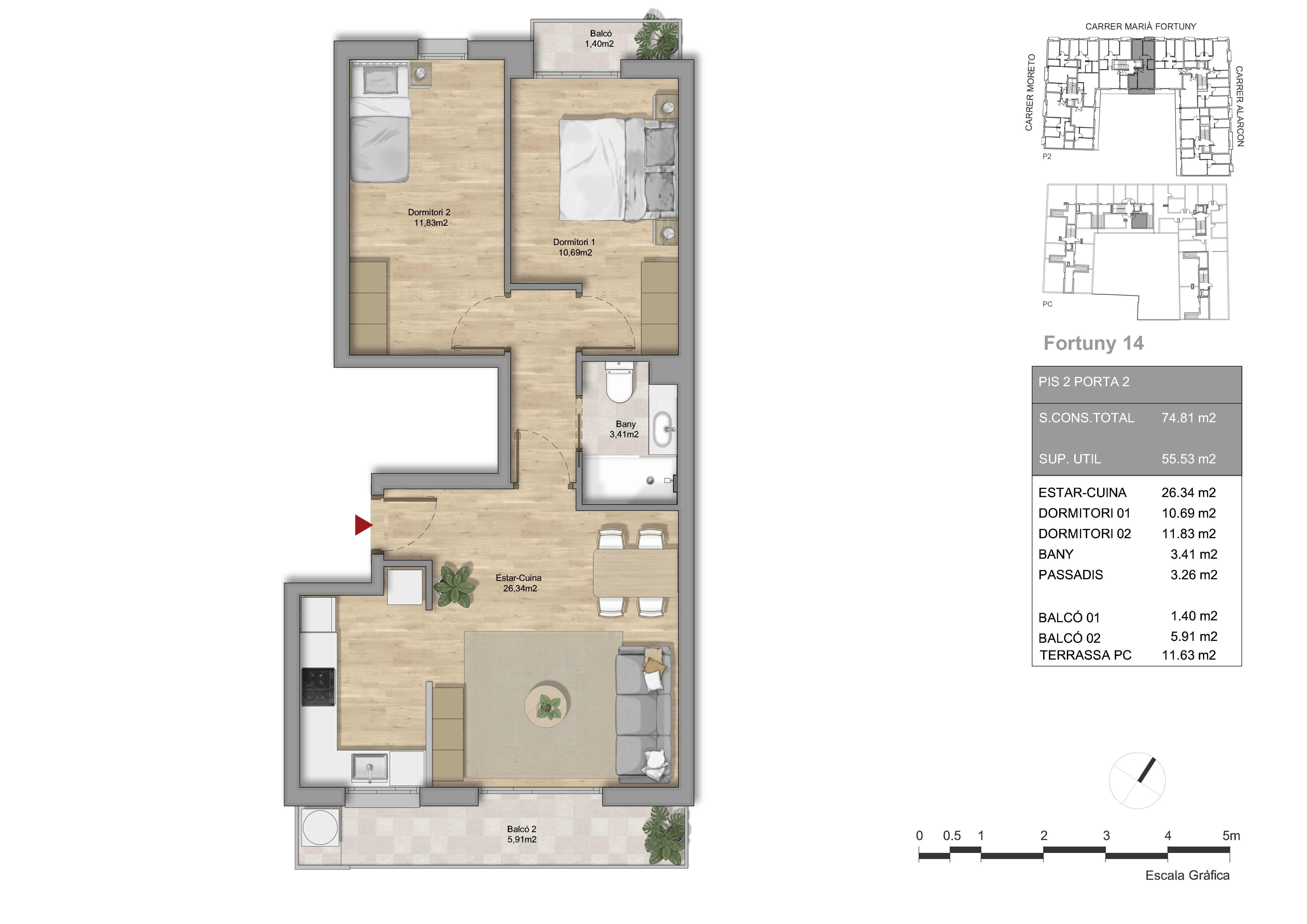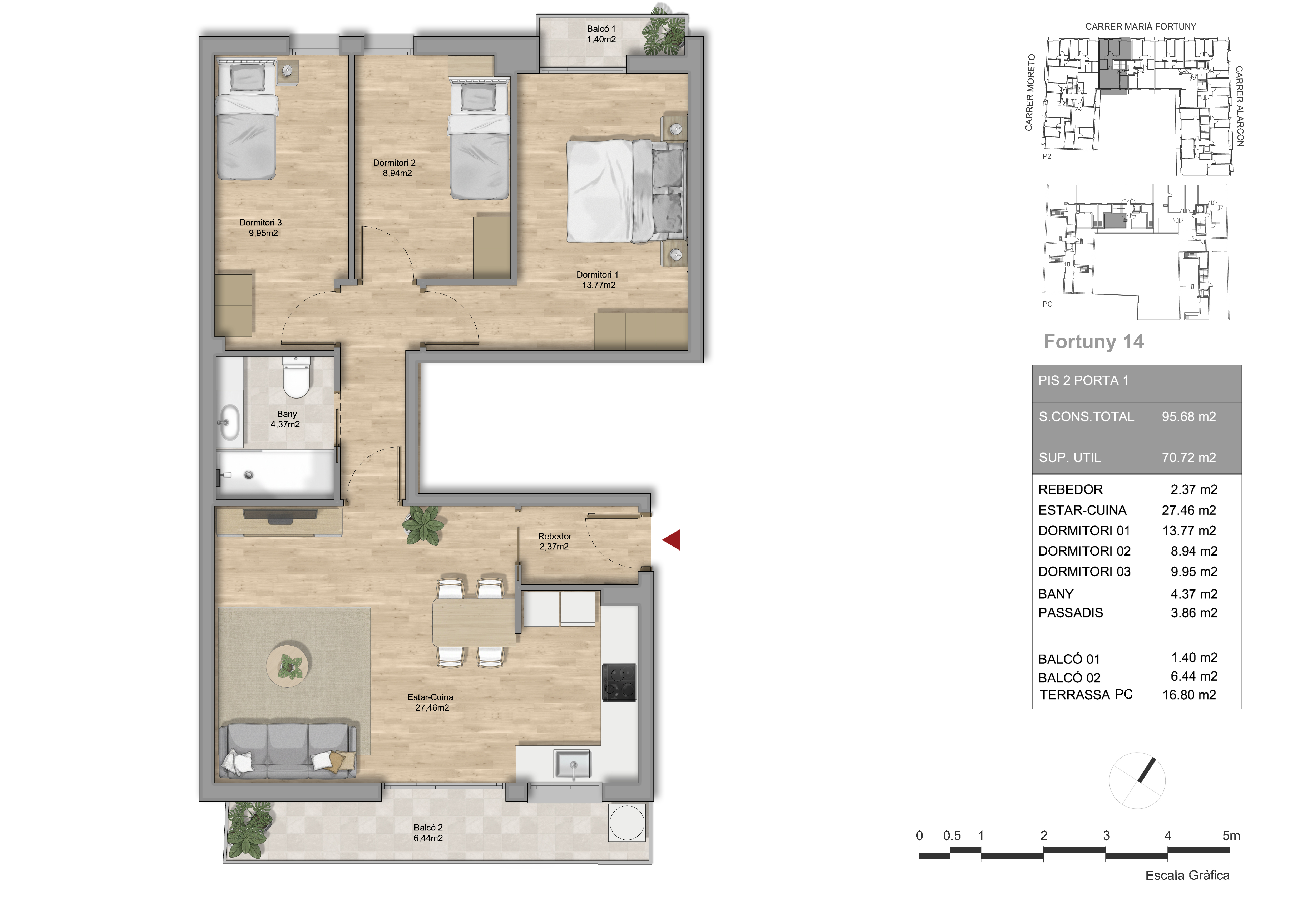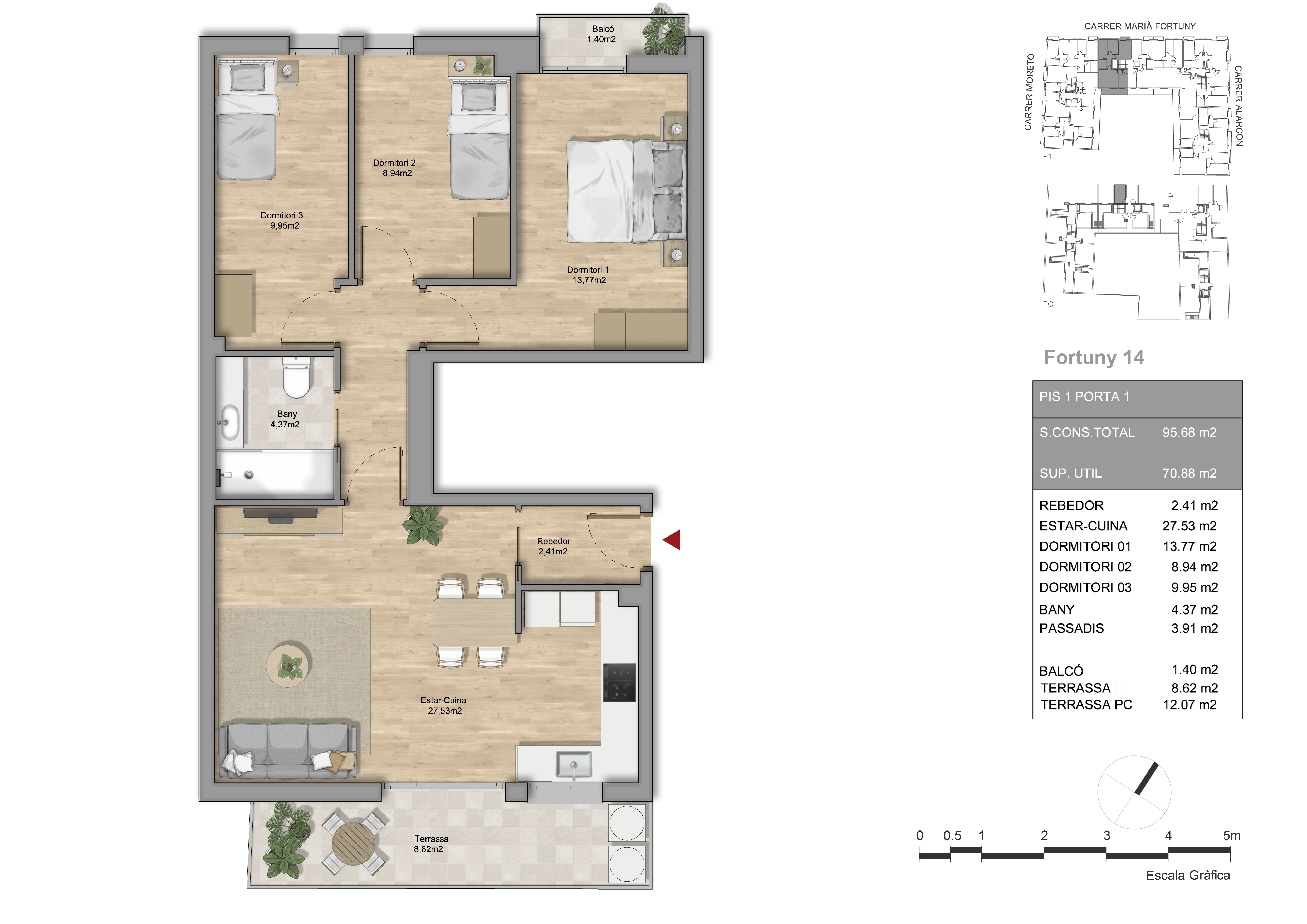 Essence Fortuny nace como la pieza angular de un ambicioso proyecto urbanístico destinado a transformar media manzana entre las calles Moretó, Fortuny y Alarcón de Mataró. Este edificio de 8 viviendas de obra nueva no es solo una promoción aislada, sino el inicio de un gran complejo residencial compuesto por un total de 4 edificios que redefinirán la estética y funcionalidad de la zona.